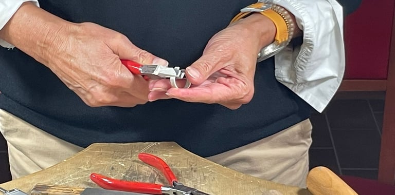 Our Make a Ring in a Day is the most popular beginners course. Annealing, texturing, forming and soldering, the day includes up to 8g of silver